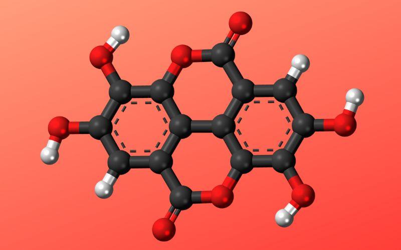 Puede encontrarse en su forma libre, o más comúnmente en forma conjugada con glicósidos (como xilosa y glucosa) o formando parte de los elagitaninos (moléculas poliméricas).