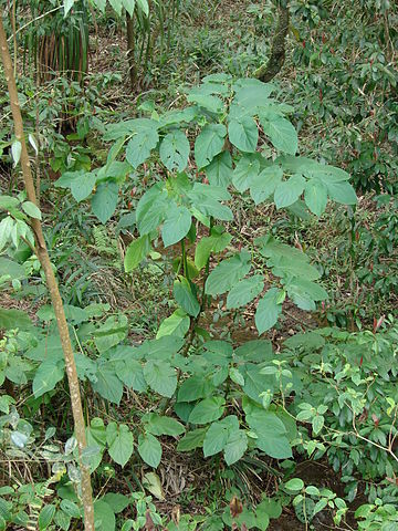 • Morfología. Arbusto herbáceo o árbol semileñoso de porte mediano, que mide entre 2-5 m, y presenta una copa frondosa.