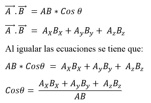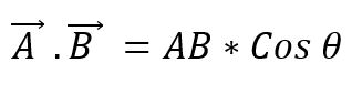 Es conocido también como producto punto de dos vectores. Cuando se multiplican los módulos de dos vectores por el coseno del ángulo menor que se forma entre estos se obtiene un escalar. Para expresar un producto escalar entre dos vectores se coloca un punto entre estos, y este puede definirse como: