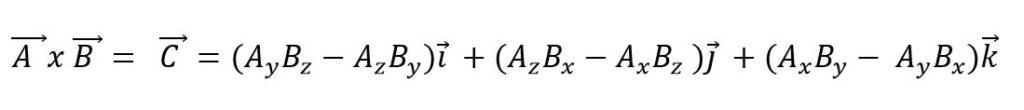 La multiplicación vectorial, o producto cruz de dos vectores A y B, dará como resultado un nuevo vector C y se expresa utilizando una cruz entre los vectores:
