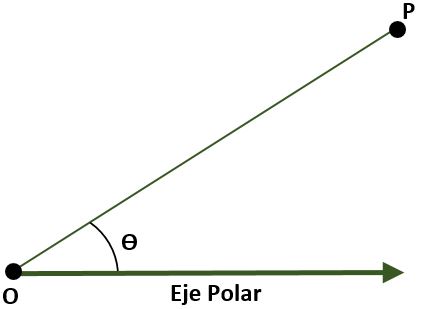 - Sistema de coordenadas polares (bidimensional). En este caso el sistema es compuesto por un punto O (origen) que es llamado polo y una semirrecta con origen en O llamada eje polar. En este caso el punto P del plano, con referencia al polo y al eje polar, es dado por el ángulo (Ɵ), que se forma por la distancia que existe entre el origen y el punto P.