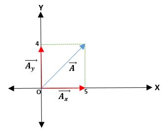Se tiene un vector Ā que parte del origen y las coordenadas de sus extremos son dadas. Así, el vector Ā = (Āx; Ay) = (4; 5) cm.