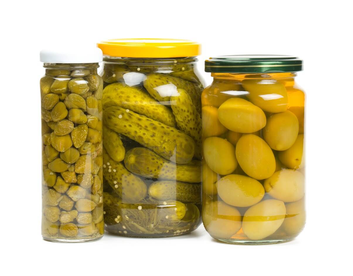 4- Aceitunas, alcaparras y pepinillos en vinagre