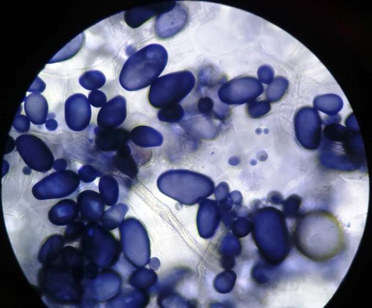 Los gránulos de almidón pueden variar en tamaño, algunos se acercan a los 45 um, y otros son más pequeños, alrededor de los 10 um.
