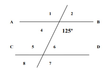∠6 + 125º = 180º → ∠6 = 180º – 125º = 55º