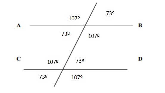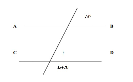 Ya que son pares correspondientes, se deduce que F=73º. Y, por otra parte, la suma de los pares conjugados es 180º, por lo tanto: