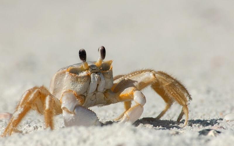 Es un animal acuático. Vive entre el mar y la orilla, haciendo huecos en la arena. Este animal siempre se mueve de lado, y tiene una concha y diez patas, de las que dos son pinzas.