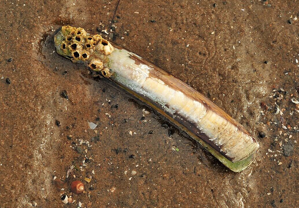 Se llama así a un molusco de unos 15 cm cuya concha tiene la forma de una navaja, alargada y de color marrón. Vive todo el tiempo en agujeros que hace en la arena marina.