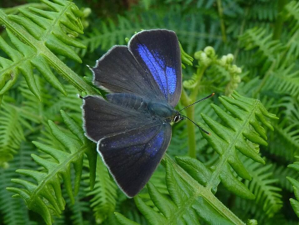 Se destaca por su colorido, un azul cobalto que varía de intensidad. En algunas especies es más claro y en otras más oscuro. El macho se diferencia de la hembra en la profundidad del azul y bordes en las alas.