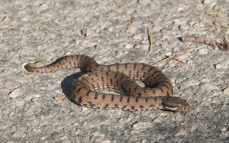 Después, las crías, de 30-80 individuos, miden unos 20 centímetros de largo y no tardan en cazar toda clase de presas, que van desde los anfibios hasta roedores de diversos tamaños.