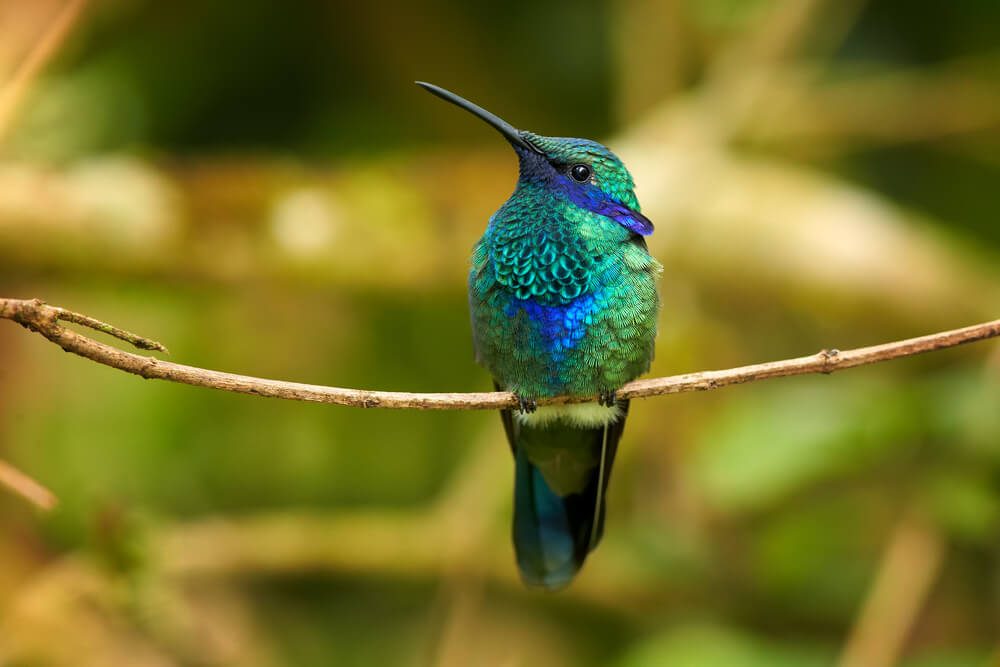 El Colibri coruscans es un ave de apenas unos 13 centímetros que destaca por su acelerado aleteo y su pico robusto. Su plumaje intercala colores verdosos y azules y su peso ronda los 7 gramos. Tiene la peculiaridad de que puede volar hacia atrás.