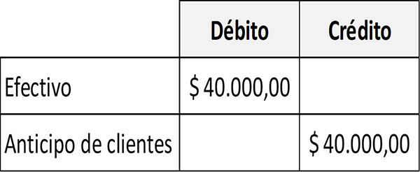 Se debita en la cuenta de Efectivo (activo) y se acredita en la cuenta de Anticipo de clientes (pasivo).