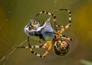 Resulta interesante ver cómo los individuos de esta especie envuelven a sus presas con un hilo de seda antes de consumirlas. Luego de matar y envolver a sus presas, las arañas pueden o no consumirlas inmediatamente.