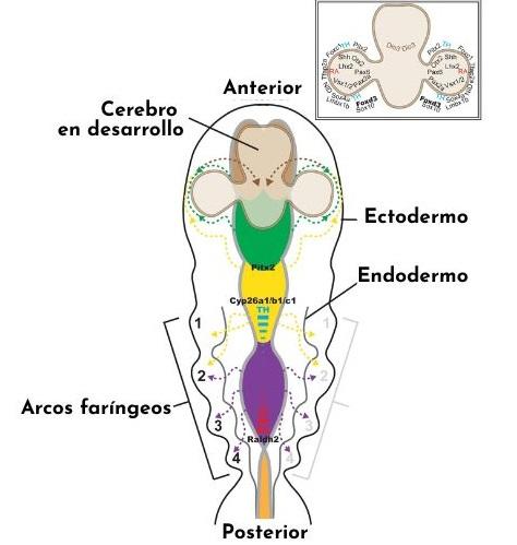La formación de los arcos branquiales comienza alrededor de la cuarta semana del desarrollo embrionario intrauterino. Estos consisten en seis pares de arcos que van decreciendo de tamaño caudalmente.