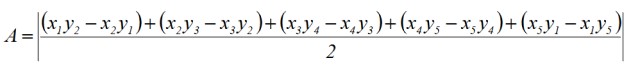 Donde A es el área del polígono y (xn , yn ) son las coordenadas de los vértices. Un polígono de n lados tiene 5 vértices, para el pentágono sería n= 5: