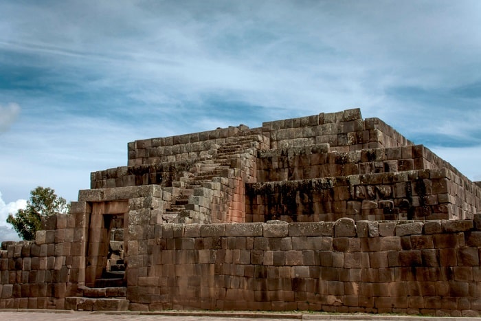 El recinto religioso de Sacsayhuamán estaba situado sobre una colina cercana a Cuzco. Este edificio estaba compuesto por tres plataformas construidas con enormes muros de contención. Sobre ellas había tres torreones.