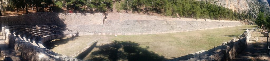 Estadio de Delfos. Fuente: Greg Schechter from San Francisco, USA, CC BY 2.0 <https://creativecommons.org/licenses/by/2.0>, via Wikimedia Commons