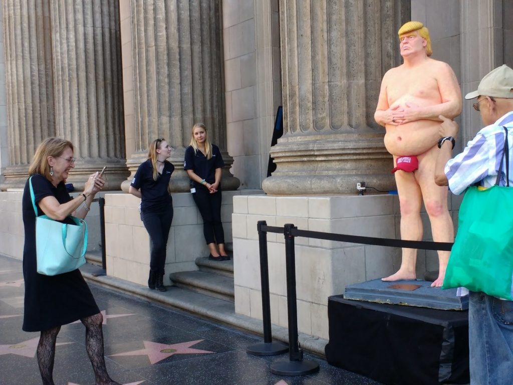 Esta obra se trata de una estatua que muestra al expresidente estadounidense Donald Trump desnudo y fue llevada a cabo por el colectivo de artistas urbanos llamado Indecline.
