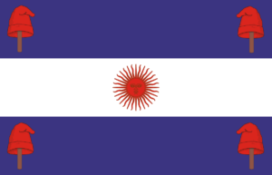 En 1818, dos años después de la firma del acta de independencia de Argentina, las Provincias utilizaron una bandera similar a la actual, pero con los colores más oscuros.