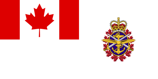 Otra bandera oficial en Canadá es la que identifica a sus Fuerzas Armadas. Este pabellón muestra a la bandera de Canadá en la esquina superior izquierda, dejando en blanco el resto de la insignia.