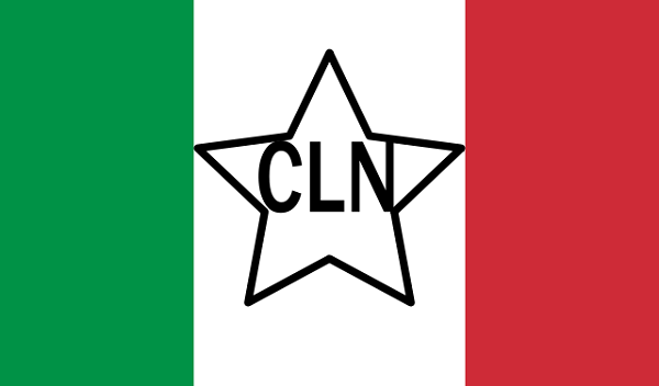 La resistencia italiana se articuló de diferentes maneras. Una de ellas fue el Comité de Liberación Nacional, establecido a partir de 1943 y disuelto en 1947. Esta organización tuvo carácter político y militar y usó también una bandera tricolor, pero en su parte central incluyeron una estrella con las siglas CLN.