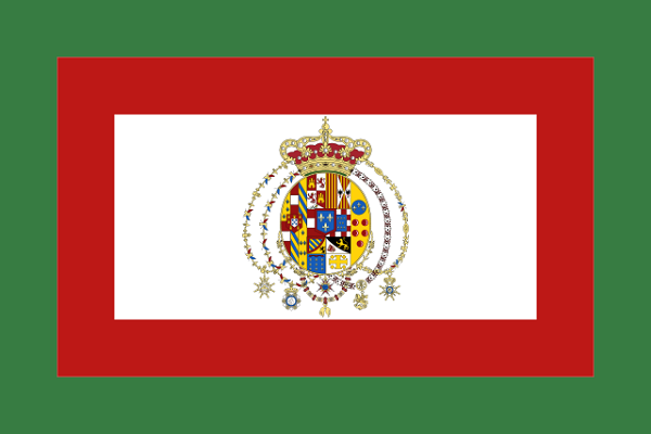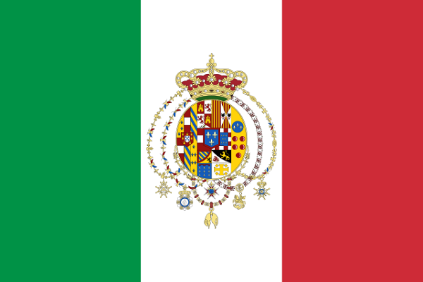 El rey Fernando II de Borbón promovió un cambio constitucional en 1848, en el que incluyó una modificación en el pabellón. Tradicionalmente, el Reino de las Dos Sicilias había usado el color blanco como distintivo de la casa Borbón, pero los colores rojo y verde fueron añadidos en forma de marco. El símbolo mantuvo el escudo borbónico sobre fondo blanco en el centro.