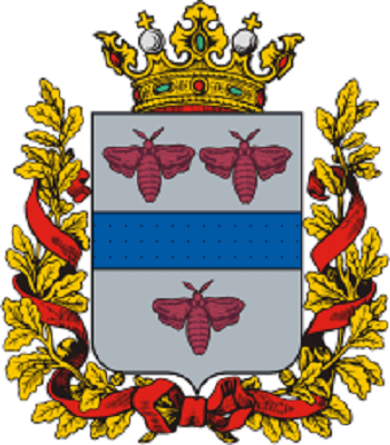 El óblast mantuvo un escudo. Tuvo tres franjas, dos de las cuales son plateadas y una azul. En las plateadas se añadieron unas mariposas moradas. Además, el escudo mantuvo los símbolos reales zaristas.