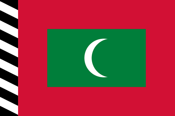 Sin embargo, no existía una bandera nacional. Se presume que el rojo fue escogido como color real debido a que contrastaba con el azul del mar. El sultán de Maldivas mantuvo una bandera vertical de dos triángulos, mientras que la reina tenía una de tres.