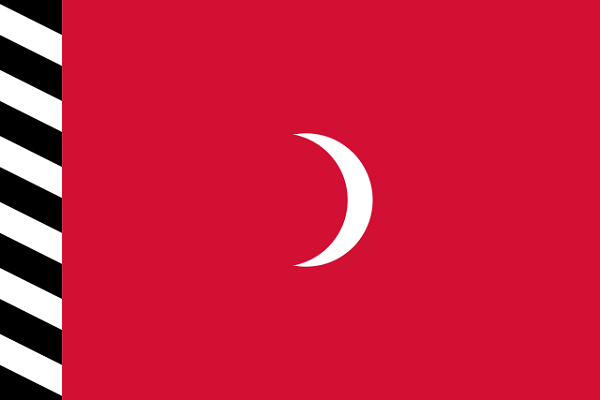 En la central se mantuvo la media luna, acompañada por una estrella blanca. En el extremo superior derecho y en el inferior izquierdo se añadieron estrellas blancas que completaron la bandera.
