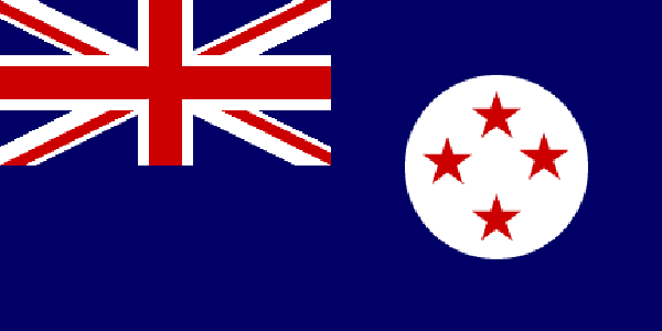 La propuesta de bandera de Hastings incluyó la constelación de la Cruz del Sur y se aprobó el 23 de octubre de 1869 como bandera de las embarcaciones oficiales. Uno de los primeros modelos mostraba las estrellas de la Cruz del Sur en un círculo blanco. Este se correspondió con la adopción del Código Internacional de Señales.
