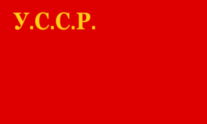 La República de Ucranianos Soviéticos fue un país de corta duración que existió tras la decisión del Congreso de crear el país y unirse a la Rusia soviética. Se adoptó una bandera similar a la de la Unión, pero con el pabellón nacional de Ucrania y las iniciales del país escritas en cirílico en el cantón izquierdo superior.
