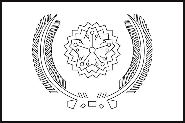 Pero la bandera del Mandato del Pacífico Sur también existió y representó a las islas. Fue un paño blanco con un escudo silueteado en negro. En el centro incorporó una estrella y, a los lados, dos ramas de finas hojas.