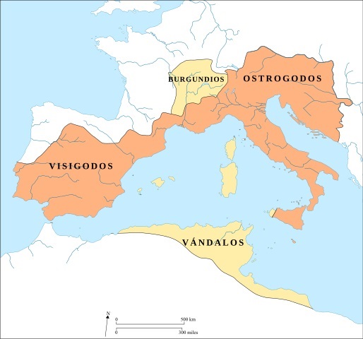 Los visigodos acabaron controlando la península ibérica, mientras los ostrogodos establecieron un reino en la península itálica.