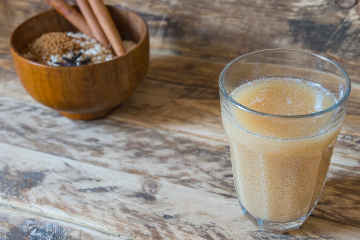Esta cocción se vierte en un envase de vidrio o jarro de barro, luego se tapa y permanece a temperatura ambiente por unos 4 días. La bebida se sirve fría porque es muy refrescante.