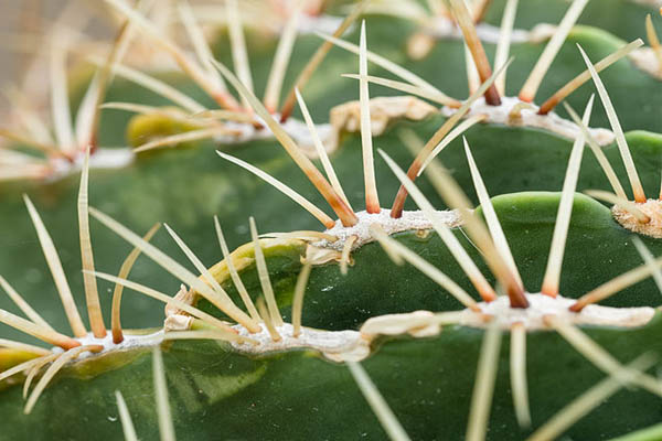En estos casos las hojas en lugar de una lámina foliar grande y continua, están compuestas de pequeñas hojuelas. De esta forma se puede realizar la fotosíntesis y minimizar la pérdida de agua por transpiración, en tanto las espinas brindan protección.