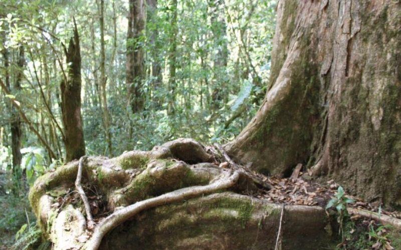 Los árboles de este bosque suelen presentar una planta llamada salvajina, musgo español o barba de viejo. Estas plantas crecen sobre las ramas de los árboles y caen al suelo como lo hace la barba de un hombre. Generalmente, aparecen en climas tropicales con alta humedad.
