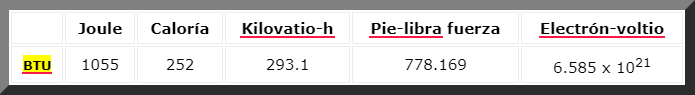 Conversiones BTU-otras unidades