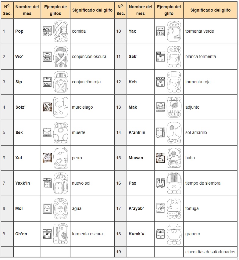 Por ejemplo, el uinal pop, que hacía referencia al año nuevo; el uinal zip era el mes cuando se invocaban a los dioses; y el uinal uo, las semanas dedicadas a la oración. Posiblemente, esos indicios fueron las primeras manifestaciones del sistema de medición.