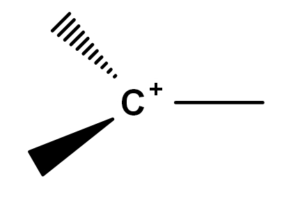 Nótese cómo la carga positiva se localiza exactamente sobre el átomo de carbono, y que le falta además un enlace. Por lo tanto, el carbocatión es deficiente de electrones, siendo esta la causa de su alta reactividad.