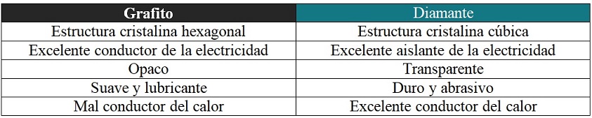 Aquí se hará también un breve comentario respecto a las propiedades diferentes para estos dos alótropos: