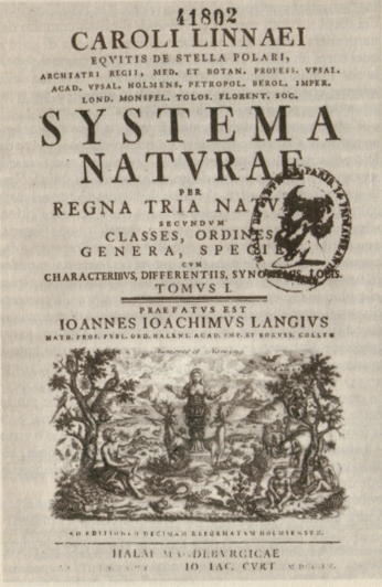 Con la ayuda económica de Isaac Lawson, un doctor escocés, el trabajo de Linneo se publicó con el nombre de Systema naturae. (el título completo era Systema naturæ per regna tria naturæ, secundum classes, ordines, genera, species, cum characteribus, differentiis, synonymis, locis, en español Sistema natural, en tres reinos de la naturaleza, según clases, órdenes, géneros y especies, con características, diferencias, sinónimos, lugares).