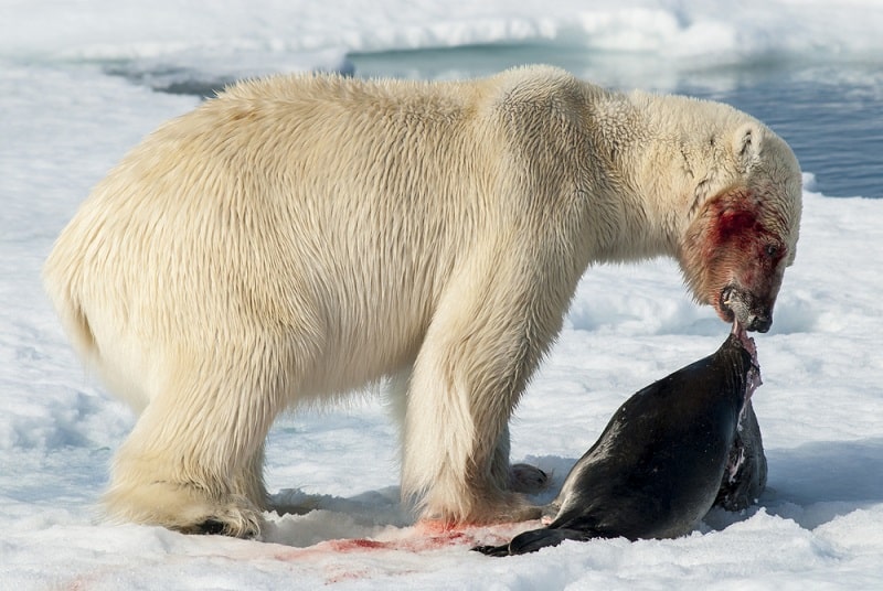 El oso polar (Ursus maritimus) es un carnívoro que habita exclusivamente en las zonas polares del hemisferio norte del planeta, es un cazador solitario y se alimenta de focas, morsas, huevos de pájaros y peces.