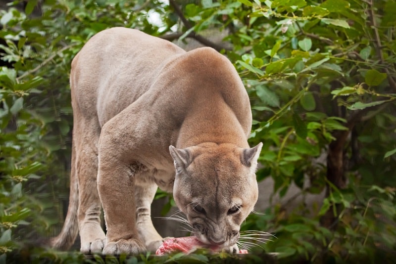 El puma (Puma concolor) es un felino cazador solitario que, al igual que el tigre, les prepara emboscadas a sus presas, acechándolas desde la maleza y atacándolas por sorpresa. Habita en casi todas las regiones montañosas del continente americano. Se alimenta de ciervos, roedores y camélidos.