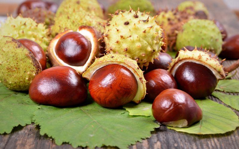 - Medicinal. De la especie Aesculus hippocastanum se aprovechan en medicina herbolaria hojas, corteza y semillas. En general, se emplea para reducir la fiebre, sanar edemas locales, regular la circulación, calmar trastornos del sistema nervioso y aliviar problemas de hemorroides y flebitis. Este árbol contiene esculina y escina, dos principios activos que evitan la formación de edemas. Además, les da resistencia a los vasos sanguíneos, lo que permite aliviar problemas como venas inflamadas, varices y hemorroides. Aplicado de forma tópica como pomada, alivia la inflamación ocasionada por insuficiencias venosas, flebitis, várices y otros problemas circulatorios, como edemas y equimosis. Consumido por vía oral como cápsula elaborada a base de un extracto seco, permite controlar la fragilidad capilar, dismenorreas, metrorragia y epistaxis.
