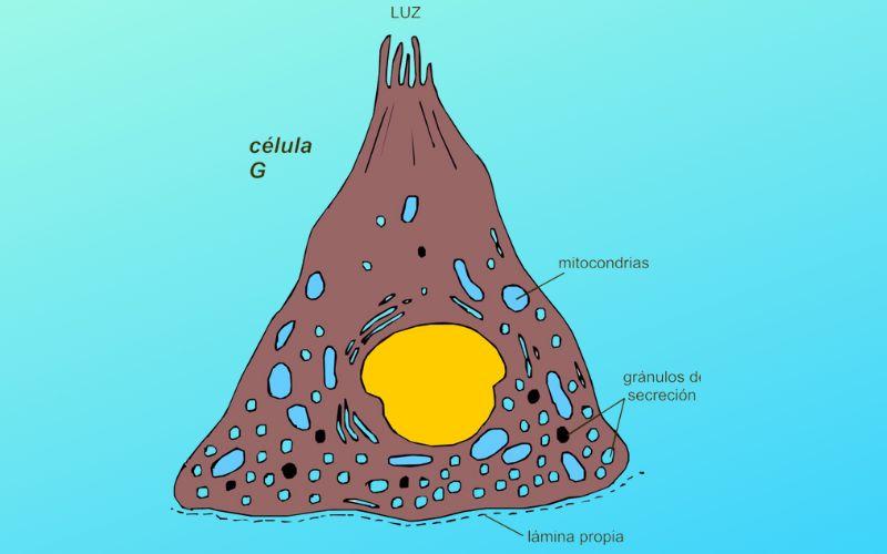 Las células G son células endocrinas que están sometidas a regulación humoral, neural y del contenido luminal. Se ubican a nivel de la mucosa duodenal y del antro gástrico. Estas células representan un porcentaje minoritario de las células de la mucosa gástrica (1%).