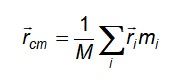 Las tres ecuaciones se reducen a una forma compacta al considerar el vector rcm o vector de posición del centro de masas: