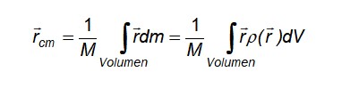 Donde r es el vector de posición de una masa diferencial dm y se ha hecho uso de la definición de densidad de masa para expresar el diferencial de masa dm contenida en un diferencial de volumen dV: