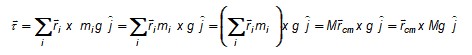 Las tres ecuaciones se reducen a una forma compacta al considerar el vector rcm o vector de posición del centro de masas:
