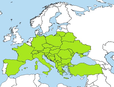 En Europa es posible encontrarla en casi todos los países que la integran. Las excepciones están constituidas por los países escandinavos (menos Suecia), Portugal, Países Bajos, Rusia y Reino Unido. Asimismo, en Asia está presente en países como Turquía, Líbano, Siria y Palestina, entre otros. En África se encuentra circunscrita solo a pequeñas regiones del norte del continente.