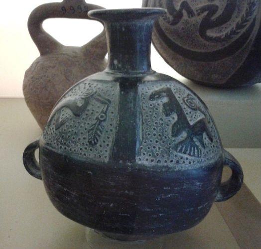 – Forma. Las vasijas eran globulares en su mayoría, forma que les brindaba mayor superficie para expresarse mejor mediante el bajo relieve. Asimismo, contaban con un asa, principalmente ubicada en la parte superior, y un gollete o pico.